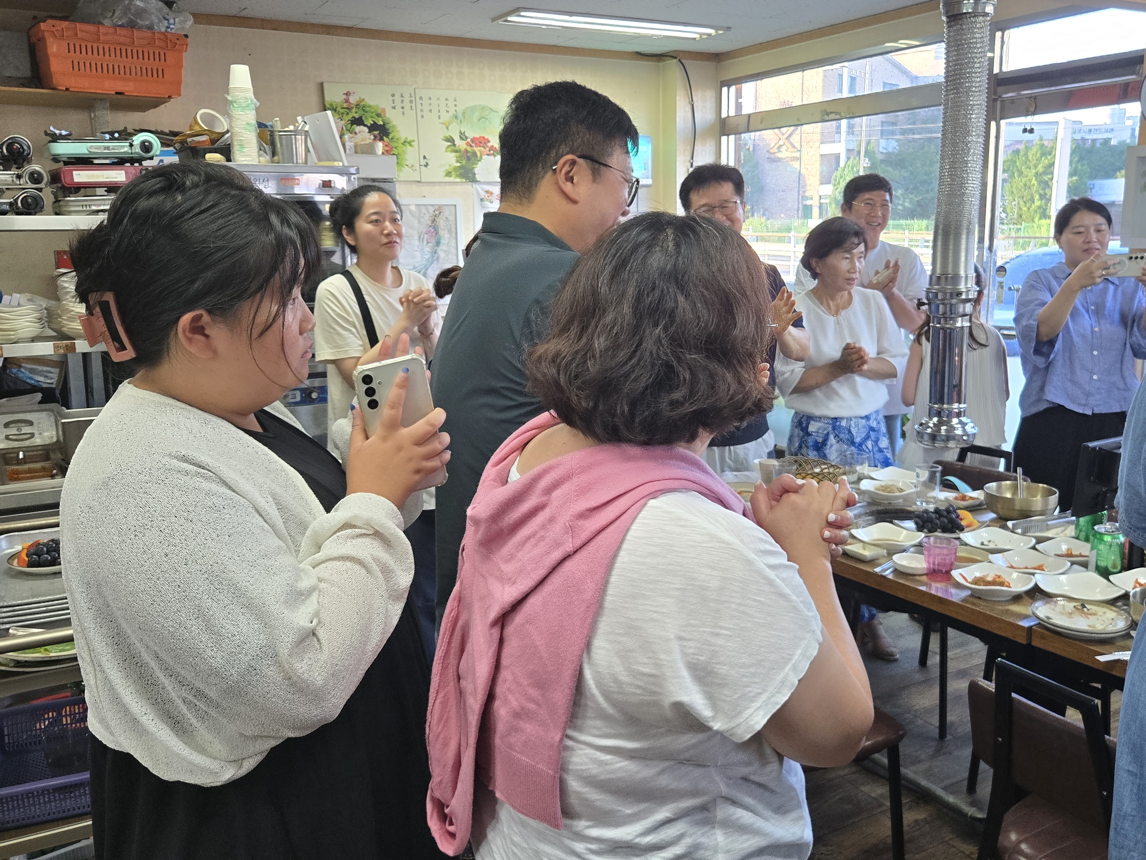 다들 모이신 가운데 들어가서 인사하고 고기먹고
